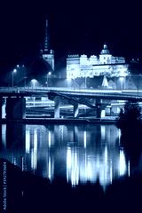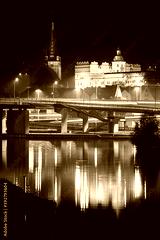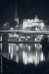 The Ducal Castle and Cathedral in Szczecin at foggy night, Poland.