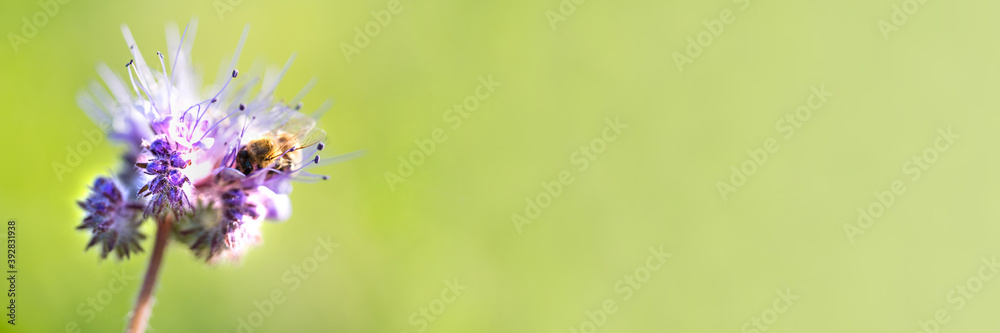 Honigbiene auf einer Blüte. Büschelschön, Biene, Bienensterben, Textfreiraum, Postkarte, Makrofotografie, Landwirtschaft , Wiese, Pflanze, Insekt.