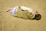 man blind drunk on the beach