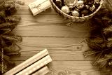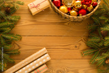 Preparation for celebrating Christmas and New Year. Gift decoration, Christmas tree decoration.Christmas New Year Celebration Decorations Concept.Selective focus.Copy space