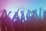 Photo of meeting crazy dance carefree party enjoy raise hands wear trendy outfit modern club indoors