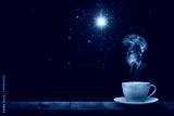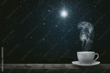 hot coffee on the table on a night background