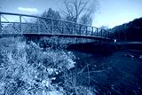 A pedestrian bridge crosses the Don River in Toronto, Canada.
