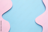 Abstract paper cut pink blue waves art on light blue background, pastel colors with copyspace