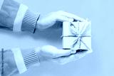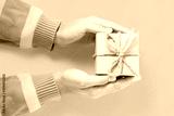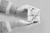Top view, Christmas gift box cardboard in hands female for background new year, mother's day, anniversary, birthday, party and congratulation get a degree.