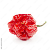 Carolina Reaper, the hottest chile pepper Capsicum chinense, whole ripe pod, isolated on white background. Superhot or extremely hot chile pepper