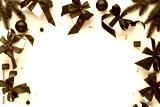 Christmas background with red decorations, baubles, fir tree branches, gift boxes