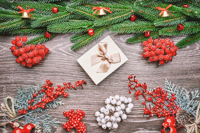 Christmas composition. Flat lay. Copy space. Banner backdrop