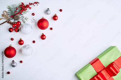 Christmas composition. Flat lay. Copy space. Banner backdrop