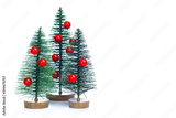 Merry Christmas. Decorative fir trees with colorful balls ornament on white background.