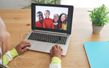 African senior woman doing video call with her family during coronavirus lockdown at home - Social distance between people concept - Focus on right hand