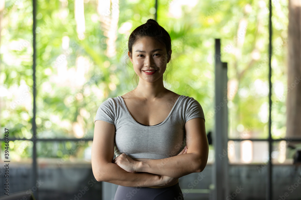 woman in sportswear standing crossarm ready to workout