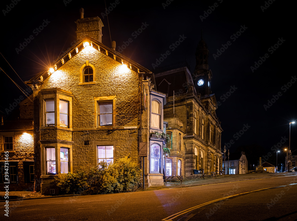Night view of Buxtob, a spa town in Derbyshire, in the East Midlands region of England