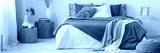 Real photo of a natural bedroom interior with a double bed and wooden bedside tables