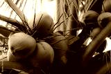 Bunch of coconut on coconut tree. Tropical fruit. Palm tree with green leaves and fruit. Coconut tree in Thailand. Coconut plantation. Agriculture farm. Organic drink for summer. Exotic plant.
