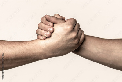 Two hands, helping arm of a friend, teamwork. Helping hand outstretched, isolated arm, salvation