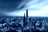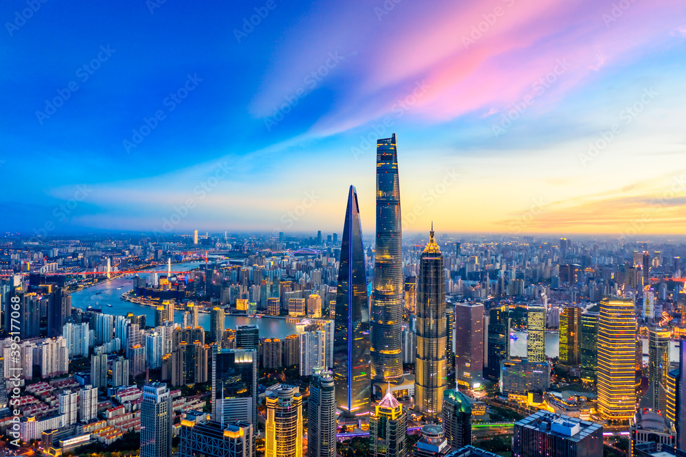 Aerial view of Shanghai skyline and cityscape at night,China.