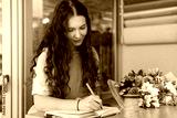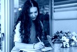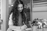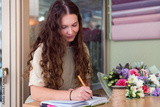 young woman florist accepts an order for a bouquet, flower shop workplace, lifestyle