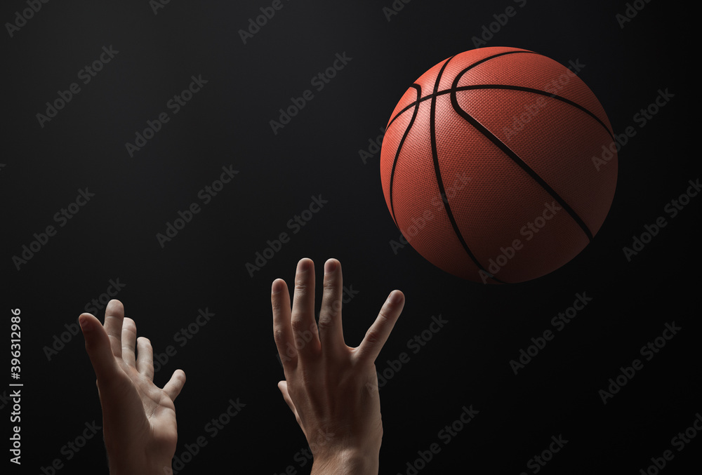 Basketball theme. The moment the ball is thrown. There are only hands and a ball in the frame