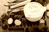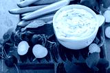 Tzatziki dip or sauce made with yogurt and cucumber with fresh vegetables and pita