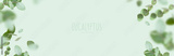 Flying fresh green branches of eucalyptus on light green background. Flat lay, top view, mock up. Nature eucalyptus leaves background. Eucalyptus branches pattern. Floral frame, layout for design