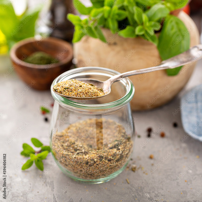 Homemade greek seasoning mix of dried herbs and spices