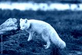 Arctic fox (Vulpes Lagopus) in wilde tundra. Arctic fox on the beach.