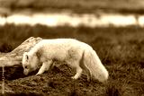 Arctic fox (Vulpes Lagopus) in wilde tundra. Arctic fox on the beach.