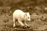 Arctic fox (Vulpes Lagopus) in wilde tundra. Arctic fox on the beach.