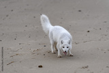 Arctic fox (Vulpes Lagopus) in wilde tundra. Arctic fox on the beach.