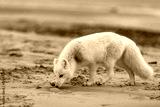 Arctic fox (Vulpes Lagopus) in wilde tundra. Arctic fox on the beach.