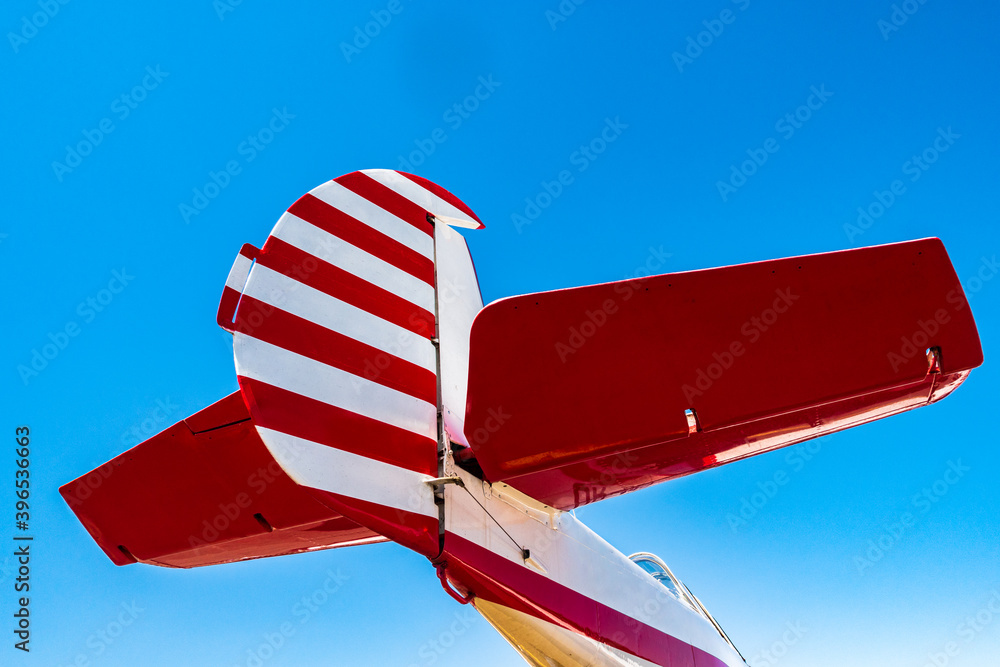 The back of the fuselage of a light-engine aircraft against the sky