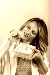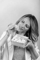 Blond woman with traditional french maracoons