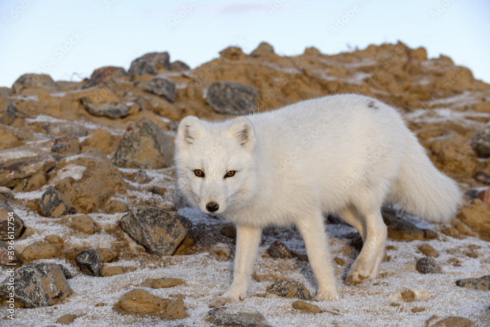 Arctic fox in winter time in Siberian tundra