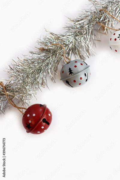Silver Christmas wreath with gray, red, and white decoration isolated on white background