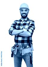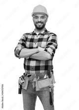 profession, construction and building - happy smiling male worker or builder in helmet and goggles with crossed arms over white background