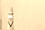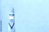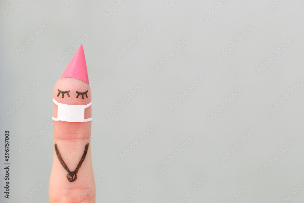 Finger art of women celebrates birthday in medical mask from COVID-2019. Concept of lonely person.