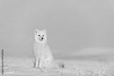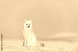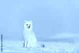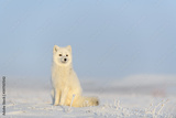 Arctic fox (Vulpes Lagopus) in wilde tundra. Arctic fox sitting.