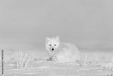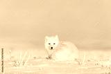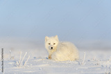 Arctic fox (Vulpes Lagopus) in wilde tundra. Arctic fox lying. Sleeping in tundra.