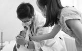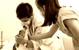 Pet doctor check beagle dog in hospital room