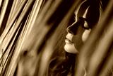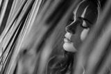 portrait of tender woman looking out of palm leaf Bali Indonesia