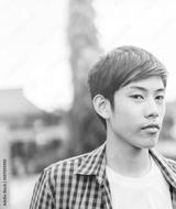 Handsome asian pre teen boy smile.Happy asian boy looking up to sky and smile.Asian preteen tween teen boy student relaxing thinking in future.Handsome asian man.High school teenager.positive people.
