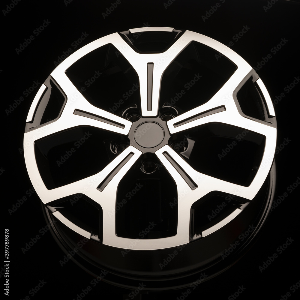 alloy wheels on a black background. New spare parts for the car or car tuning
