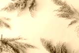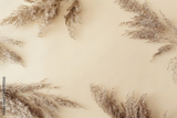 Dry pampas grass reeds agains on beige background. Beautiful pattern with neutral colors. Minimal, stylish, monochrome concept. Flat lay, top view, copy space. Set sail champagne trend color 2021