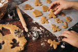 Making gingerbread christmas cookies on wooden background