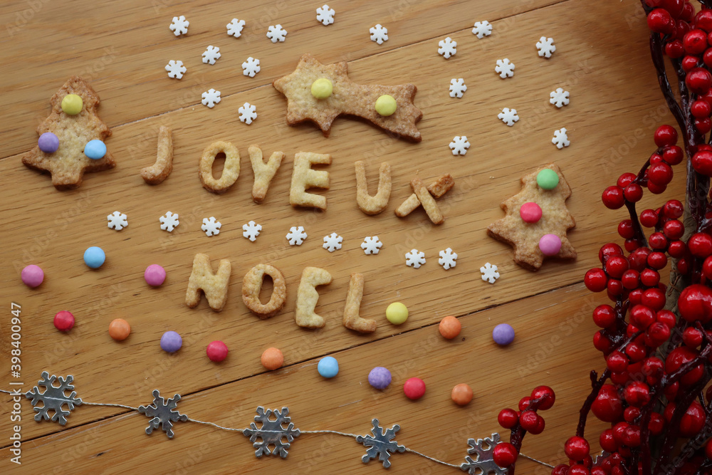 Joyeux Noel,letter, cookie, gingerbread cookie, food, sweet food, table, rustic, wood, wooden, candy, chocolate, snowflake, sugar, falling star, house, merry christmas, christmas, festive, baked, hom