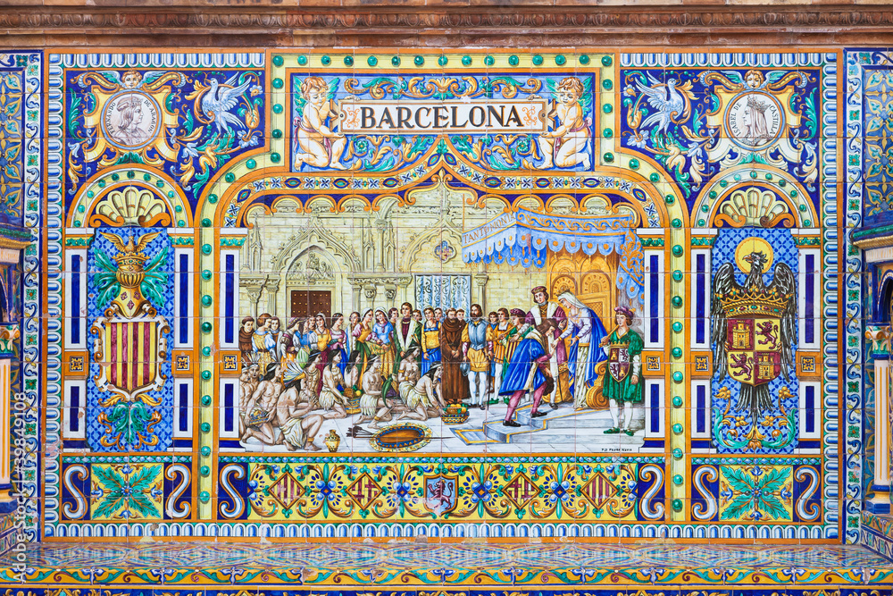 Barcelona mosaic in Plaza de España of Sevilla, Spain