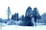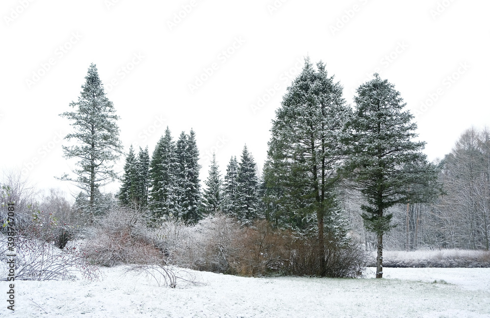 winter forest landscape. Frozen snowy trees. Winter season nature background. Christmas and new year concept.
