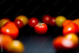 yellow and red tomatoes on black