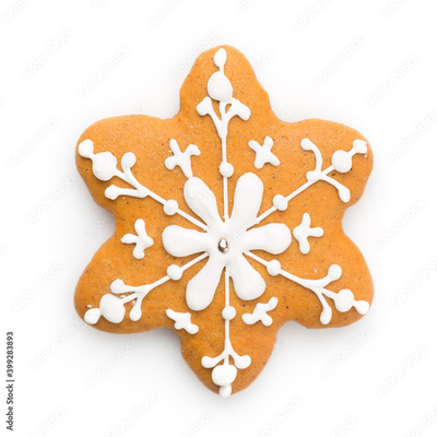 Christmas symbol. Gingerbread snowflake cookie isolated on white background